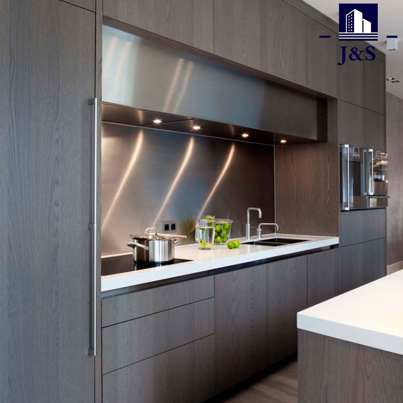 ☞Akryylikeittiön ovet käyttävät puhdasta melamiinikastoprosessia, puristusaika on yksi tunti, peilipinnan kiiltävä tasaisuus, korkea kovuus, ei kellastumista ja halkeilua.