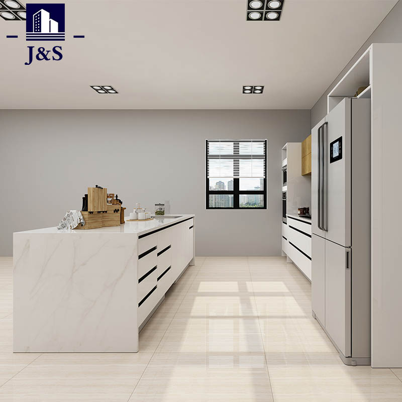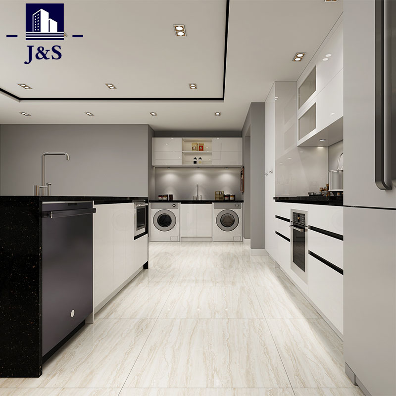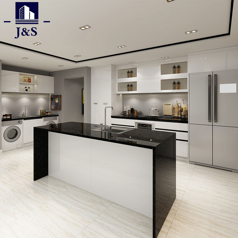 J&S toimittaa New Unassembled Kitchen Cabinet on lakkamaalattu keittiökaappi,kahvaton ovi piilotetulla mustalla putkella, seinäkaappi työnnetään auki suunnitteluun.Kuten näette, pyykin käyttö keittiön vieressä, tämä on suosittu muotoilu Australiassa talonomistaja.