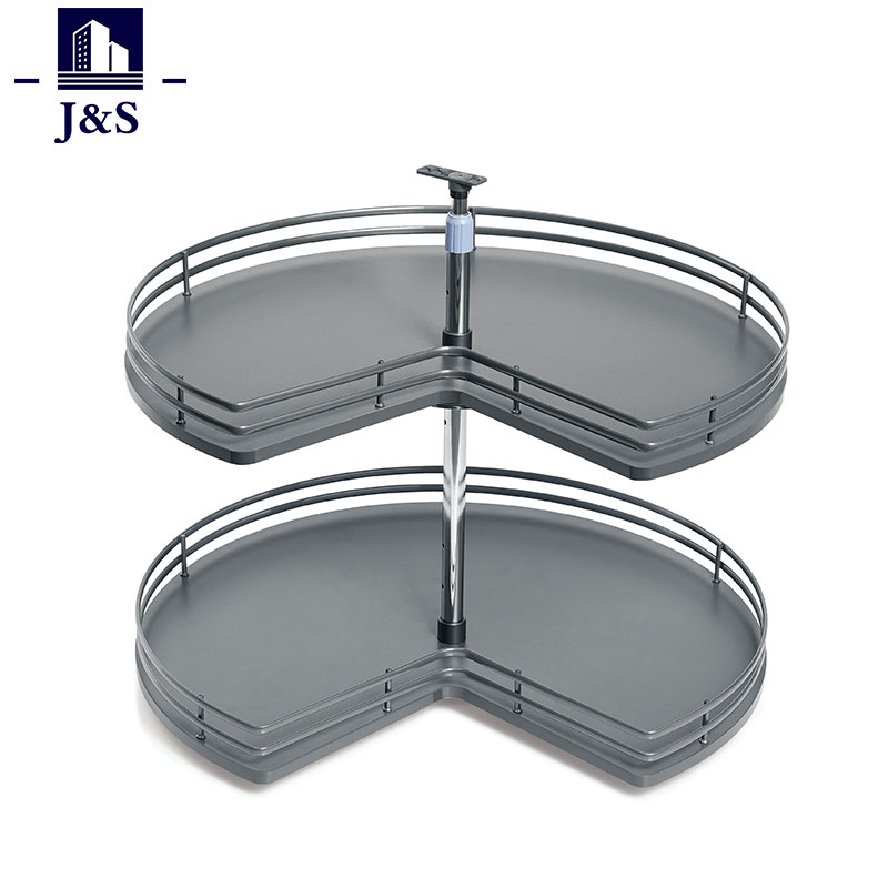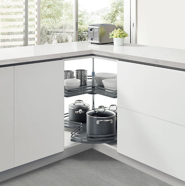 Säilytyskeittiön ratkaisu Magic Corner Kaapit jaetaan kahteen tyyppiin käyttötavan mukaan: toinen on ulosvedettävä. Tämä kulmassa ulosvedettävä kori voidaan vetää ulos yhdessä ovipaneelin kanssa, mikä maksimoi tilankäytön ja on kätevä ja käytännöllinen. Haittapuolena on, että asennus on hankala ja hinta korkea. Toinen on levysoitintyyppi. Kääntöpöydän kulmakorin hinta on paljon halvempi kuin ulos vedettävä kulmakori, ja rakenne on suhteellisen yksinkertainen. Haittapuolena on alhainen tilankäyttöaste, mikä aiheuttaa helposti hukkaa.